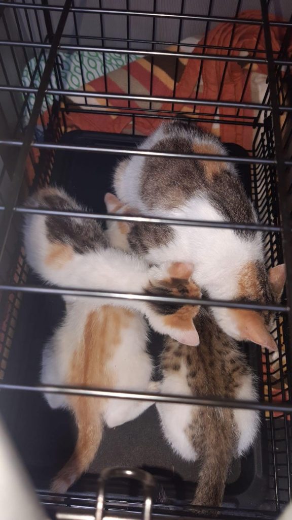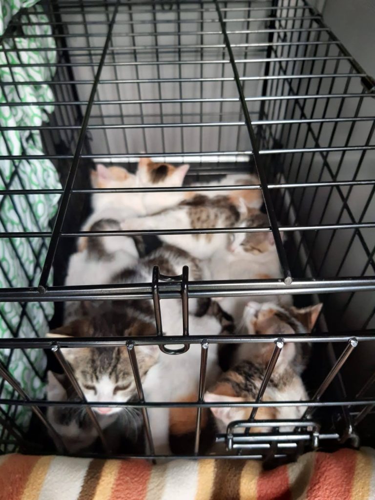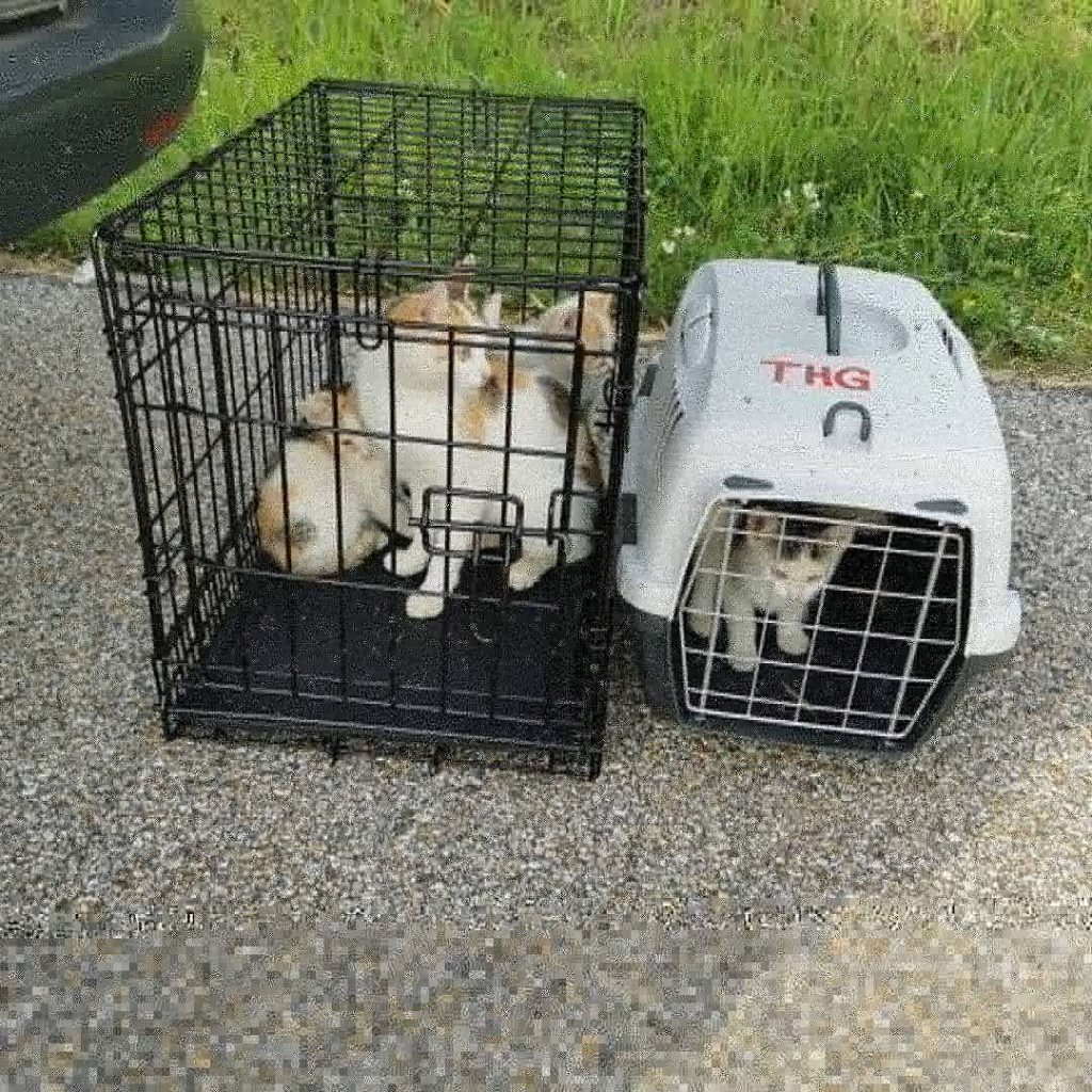 Nach dem Absuchen des Waldes und des angrenzenden Feldes wurden insgesamt 6 Kätzchen und die Mutterkatze gesichert.