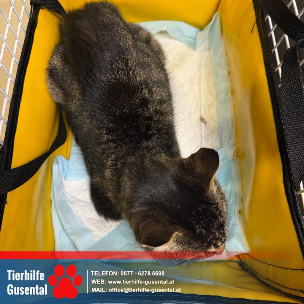 Der Stubentiger befand sich in einem schlechten Allgemeinzustand. Wir haben die Katze übernommen und zur weiteren Versorgung in die Tierklinik Sattledt gebracht. Leider ist sie nicht gechipt.