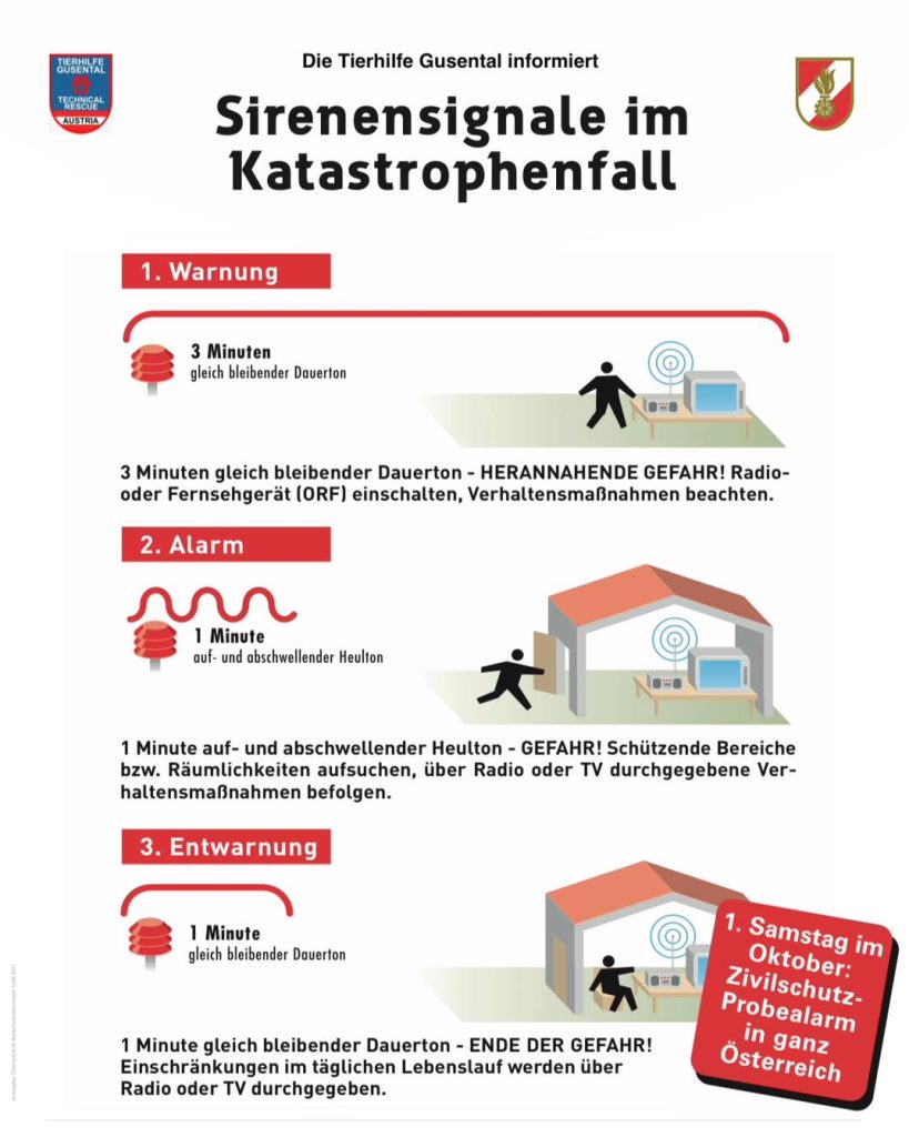 Dies soll als Hinweis dienen, um in dieser Zeit besonders auf eure Tiere zu achten. Aufgrund des länger andauernden Sirenenalarms könnten sie erschrecken und weglaufen.