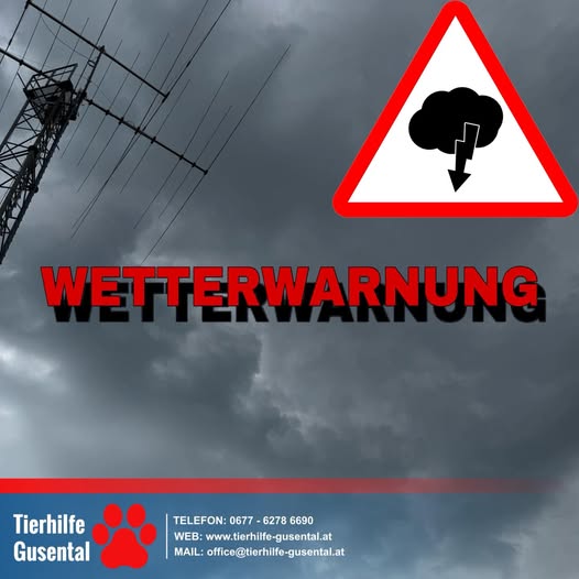 Bitte denkt an eure Tiere – starker Wind, Gewitter, Starkregen oder sogar Hagel sind angekündigt.