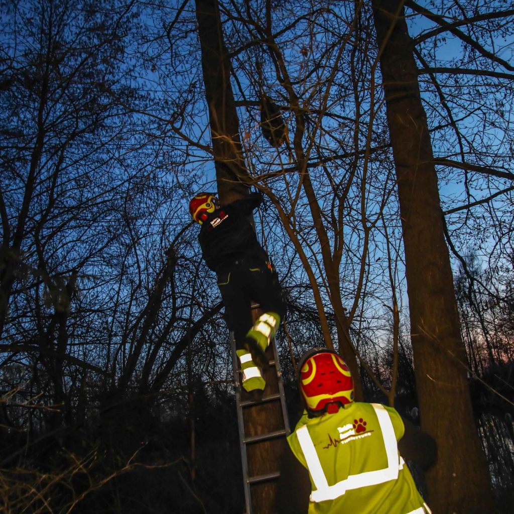 Gestern wurden wir von der Feuerwehr Marchtrenk zur Unterstützung gerufen: Eine Katze saß in einem Baum in unwegsamem Gelände fest und konnte sich nicht mehr selbst befreien.